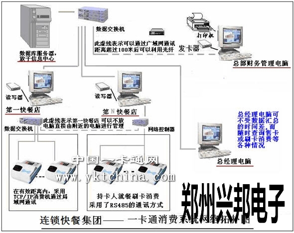 興邦連鎖快餐店儲(chǔ)值消費(fèi)一卡通系統(tǒng)要求實(shí)現(xiàn):所有持卡人員,只要手持一張智能卡,就可以完成本企業(yè)現(xiàn)有分布在全國(guó)的全部連鎖店內(nèi)的刷卡消費(fèi)。
